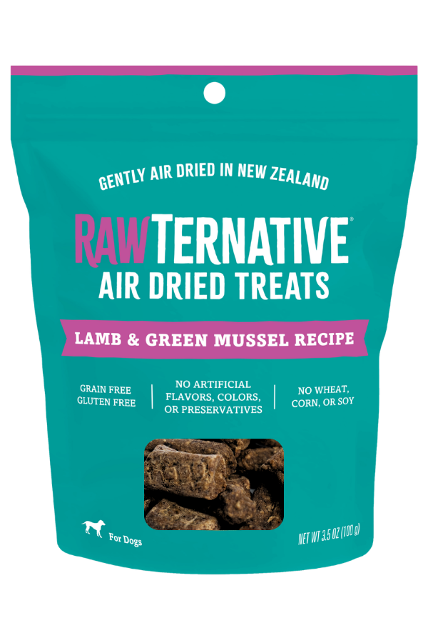 RawTernative Air‑Dried Lamb & Green Mussel Dog Treats deliver irresistible flavor in every tender, meaty bite. Made with grass‑fed New Zealand lamb, nutrient‑dense green mussel, and omega‑rich flaxseed, these treats are gently air-dried in New Zealand to lock in nutrients and natural taste. With no grains, gluten, artificial preservatives, flavors, or colors, they’re a clean, simple option for dogs and ingredient‑conscious pet parents.